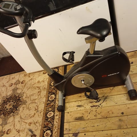 God sykkel hvor du kan justere friksjon og følge med på distanse, puls, speed, kalorier og tid.