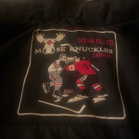 Moose Knuckles vinterjakke i størrelse M-L for menn, i svart farge. Jakken er designet for utendørs bruk i kalde værforhold. Svært lite brukt