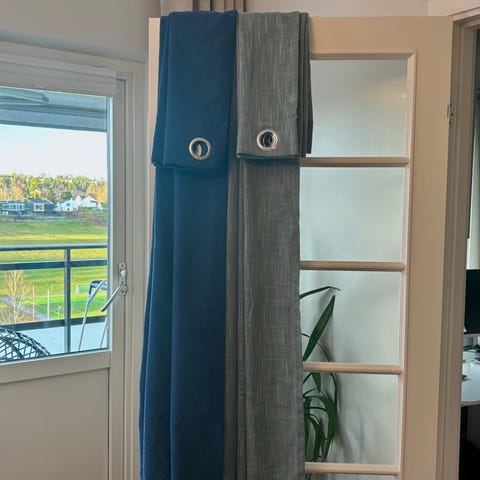 Selger to gardiner, en ubrukt, den andre har hengt oppe bare et halvt år. Prisen er 250 kr for begge to. Kan sendes eller hentes på Billingstad eller i Sandvika.