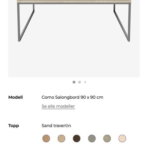 Nydelig farge i utførelsen sand travertin. Understell på bordet er stål.