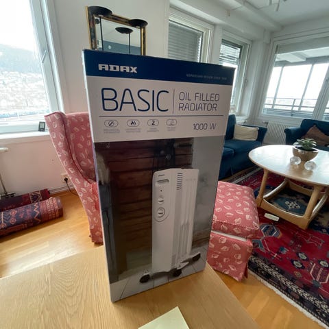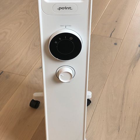 Liten og kompakt oljefylt radiator. Fungerer fint til å varme opp rom på ekstra kalde dager. Termostat og av/på knapp.