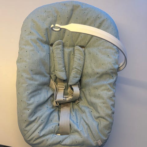 Brukt Newborn Set for nyfødte fra Stokke. Lar babyen være med familien rundt bordet på en trygg og komfortabel måte: 5-punkts sikkerhetssele, myke puter og justerbar vinkel.
