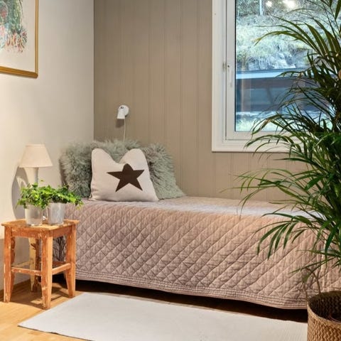Den ser litt rar ut på bilde fordi jeg skrudde av bena på den ene rammemadrassen
