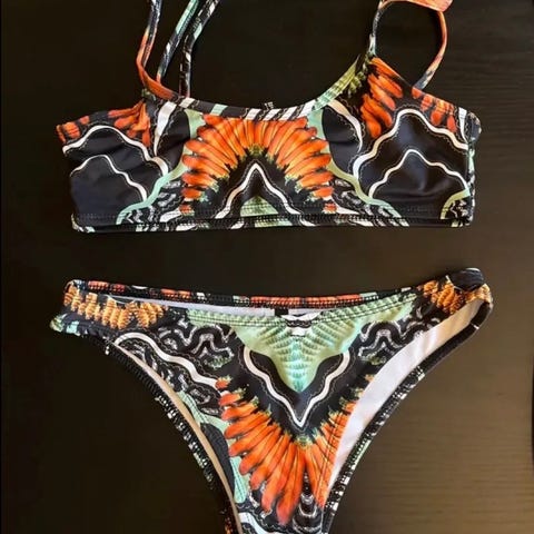 Ny. Prøvd på med undertøy på. Hygienesticker på plass sammen med lapper