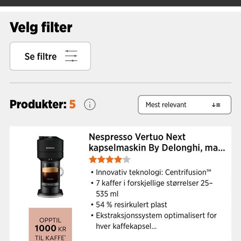 Følger også med overgang til vanlig type kapsler, ikke bare vertue kapsler.