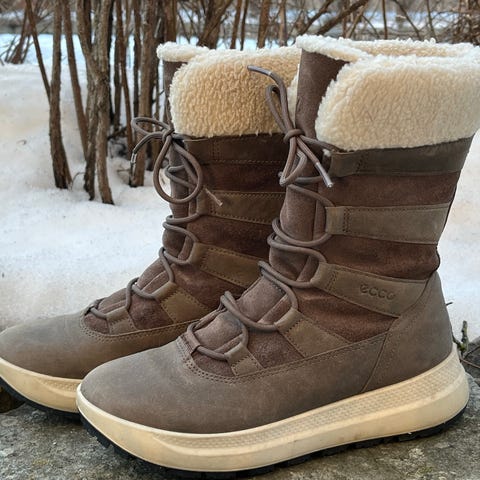 Jeg selger disse varme og gode Ecco TredTray damestøvler med ullfor i størrelse 37 fordi de ikke blir brukt. Det er liten slitasje, se bilder.