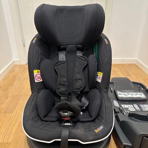 BeSafe sete (Besafe iZi Modular RF i-Size, black cab) og tilhørende base (BeSafe iZi Modular i-Size-base). Kjøpt på barnas hus til 5500kr. Setet kan være bakoverlent og fremoverlent. Basen kan også brukes til spedbarnsetet som kjøpes separat. Ingen skader, men normal bruksslitasje.