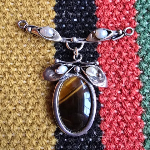 Arvet lekkert sølv(925s) halssmykke m/mørke/sorte stener t.s hbo kr 300.