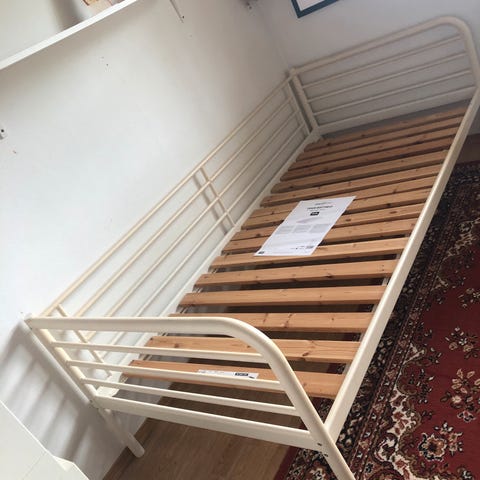 Sengen har vært lite brukt da den bare har stått på gjesterommet og brukt av gjester noen ganger. Nå står den på et lager, og har stått der i ett år. Selges utelukkende på grunn av at jeg har flyttet, og trenger den ikke lenger. Mye seng igjen!