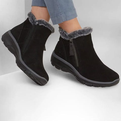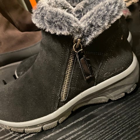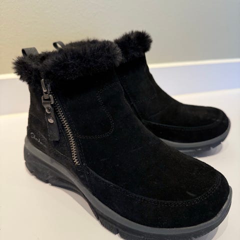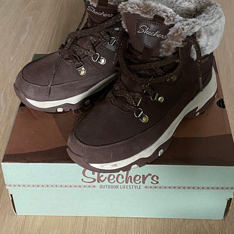 Skechers vinterstøvler i størrelse 36 med svart farge. Støvlene har en varm og myk innside, egnet for kalde værforhold. Materialet er slitesterkt og designet for å gi komfort og beskyttelse mot kulde.