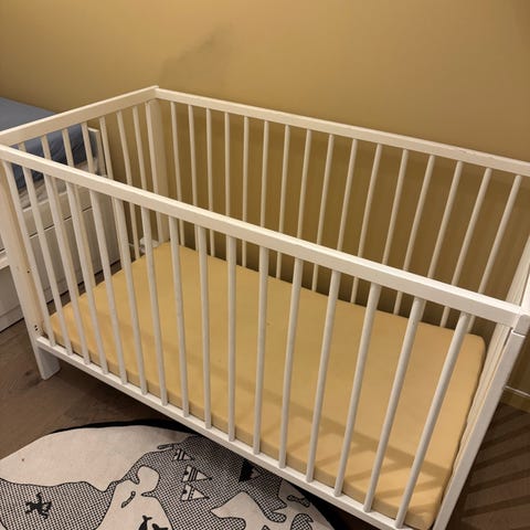 Ikea seng gis bort. Skrudd fra hverandre. Må males. Ellers alle deler.