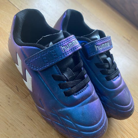 Hummel fotballsko med flerfarget design, egnet for barn. Skoene har knotter under sålen for bruk på gressbaner. Lukking med borrelås og lisser for god passform.