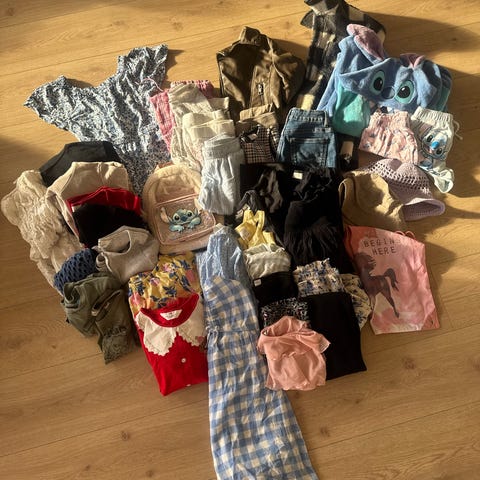 Klespakke til jente i str 128/130. Fra HM, Zara, Swedemount (turtights), 157 ++. Kuromi på noen av plaggene. Pent brukt.