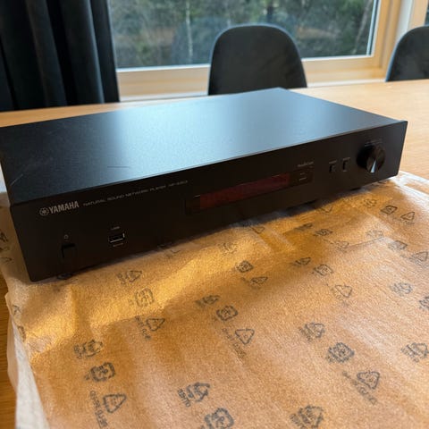 Yamaha WXC-50 trådløs streaming forforsterker i svart farge. Enheten har flere innganger og utganger for tilkobling av lydutstyr, inkludert nettverkstilkobling for streaming (kan også streame over WiFi eller Bluetooth). Pent brukt, sendes i original eske.