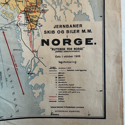 Kartet er montert på lerret stoff for at det skal kunne brettes lettere og holde lengre