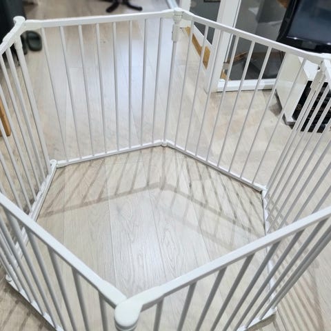 Yngri Y6 multigitter selges. Kan brukes som barnegrind, peisbeskytter, romdeler eller lekegrind. Kan tilpasses enkelt til åpninger opptil 370 cm.