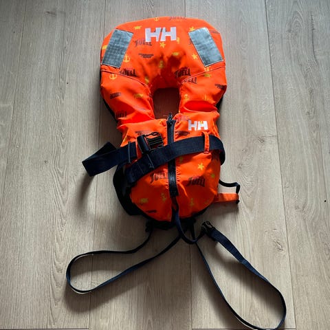 Helly Hansen Barne redningsvest i størrelse Junior, beregnet for barn som veier mellom 30 og 50 kg. Vesten har skrittstropp med klips. Vesten har oransje farge og er designet med sikkerhetsfunksjoner tilpasset barn i denne vektklassen. Brukt til ett barn.