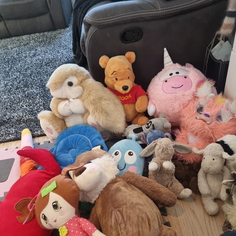 Blandet merke myke leker i ulike størrelser og farger. Laget i forskjellige materialer, egnet som samleobjekter eller for lek.