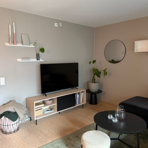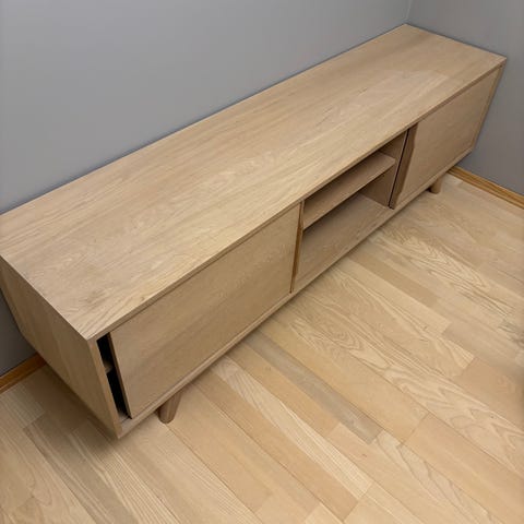 Marte TV-benk. Heltre. Ble kjøpt ny for 11.999 for ca 2 år siden på Skeidar. Et par merker i treverket etter vann og potter. Går forhåpentligvis lett bort.