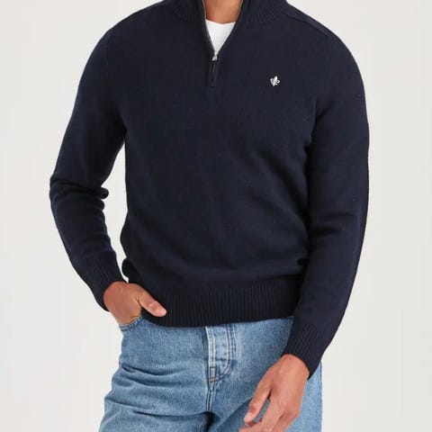 Genser fra Morris Stockholm i 100% merinoull. Half zip. Modell John.