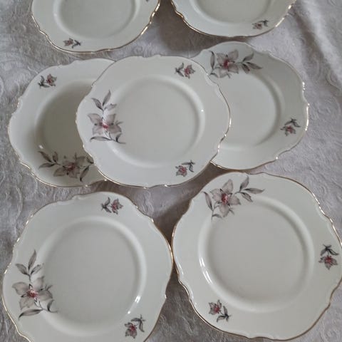 Selger 5 gamle godt brukte asjetter fra Porsgrund Porselænsfabriks servise 'Bogstad Stemor'.