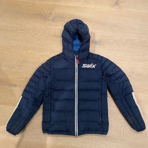 Team Down Jacket Jr er en varm dunjakke med vanntette paneler og god passform. Det er ekstra fyll i kragen for varme og elastisk hette for god passform. Mansjett i ribb, som gjør at jakken ikke sklir opp, men sitter komfortabelt rundt håndleddet.
