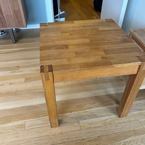 Solid salongbord i kirsebærtre med 4 skuffer og en åpen hylle under bordplaten. Bordet er fra 2000 eller 2001 og er norskprodusert, men husker ikke merke og modellnavn. Er ganske sikker på at det ble solgt av Skeidar.