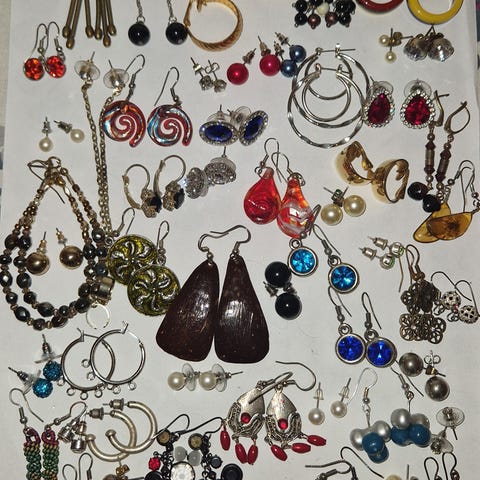 Tømmer smykkeskrinet for ferie smykker. Og utklednings smykker. Altså smykker som ikke er av noe edelt metall. Her er for andre som skal på karnevalsfest eller klipp opp og bruk materialene til noe kreativt. 10,- pr stk