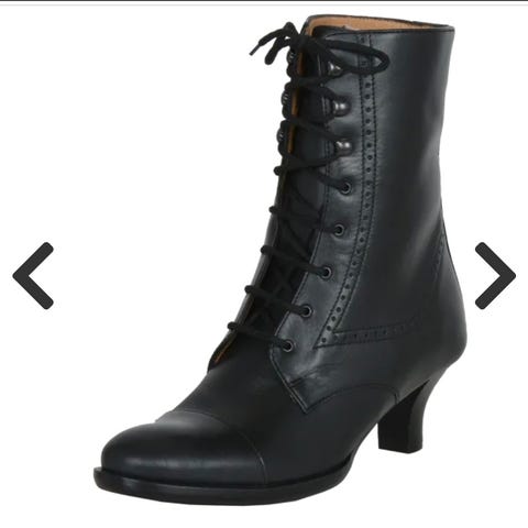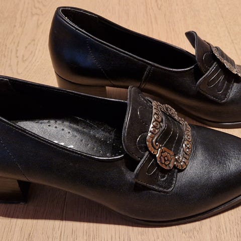 Tyrihans bunadsko/støvletter i sort skinn størrelse 38. Skoene har snøring og en lav hæl. Laget i Italia.