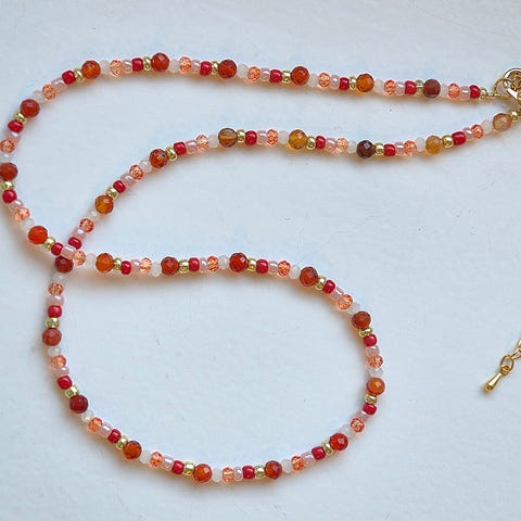 Søkeord: halskjede, rocailles, rocaillesperler, seed beads, glassperler, smykkesett, perler, perlekjede, agat, krystaller, steinperler