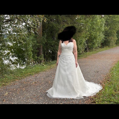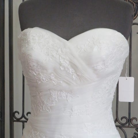Kjøpt ny i 2009, prisen da var mellom 6000-7000 kr. Kjolen har ingen hull, men må vaskes. Vaskes i et stort badekar , henger lapp på innsiden av brudekjolen hvordan denne skal behandles.