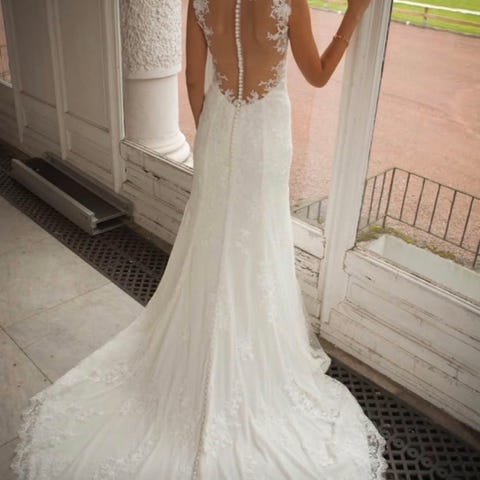 Kjolen er utrolig elegant med både inner glidelås og hekte bak knappene bak er til pynt så det ser ut som kjolen er kneppet når den er på.