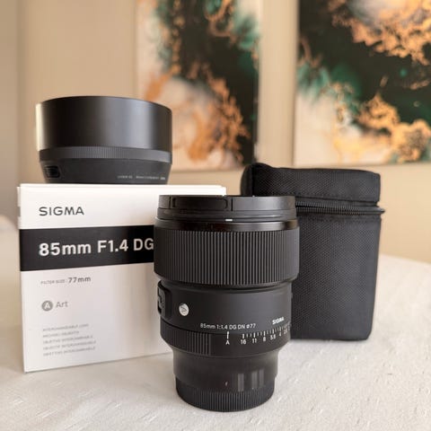 Sigma 85mm F1.4 DG DN objektiv med stor blenderåpning for portrettfotografering og lavlysforhold. Objektivet har en brennvidde på 85mm og en maksimal blenderåpning på F1.4, noe som gir god dybdeskarphet og lysinnslipp. Leveres med original eske og beskyttelsesetui.