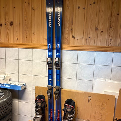 Pent brukte slalåmski med bindinger og støvler selges samlet. Skiene er str 97 cm, støvlene str 17,5 cm. Selges samlet. Kjøpt i fjor, kun brukt en sesong på skiskole. Nypris for alt var ca 4000kr.
