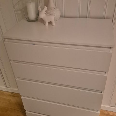 Flott Malm kommode med noen bruksmerker. Bakplate noe skadet etter flytting, se bilde.