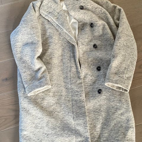 Pent brukt ullkåpe med belte i livet. 60% ull. Str L.