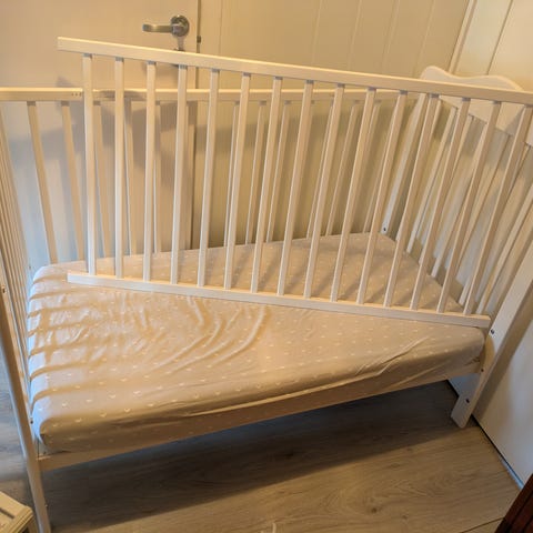 Selger også laken og sengetøy til sprinkelseng utenom.