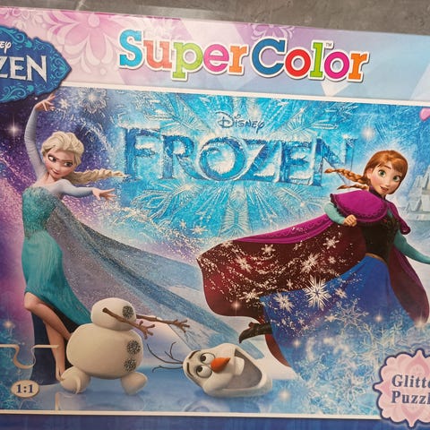 Disney Frozen/Frost puslespill med 99 biter. Motiver fra filmen Frozen med karakterer som Anna, Kristoff, Sven og Olaf. Passer for barn 5+.