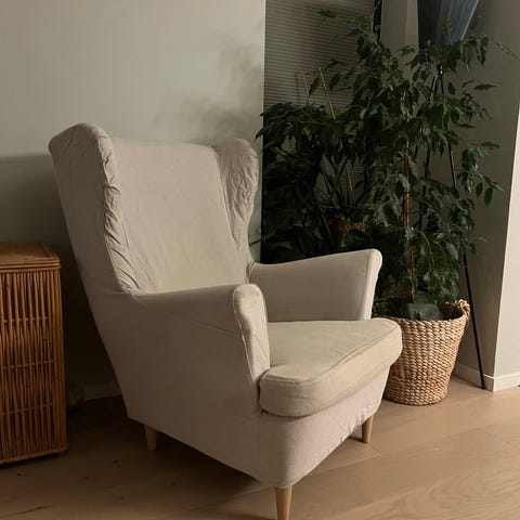 Selger en pent brukt lenestol. Merke er Strandmon og den er kjøpt på IKEA. Må hentes på Oppsal.