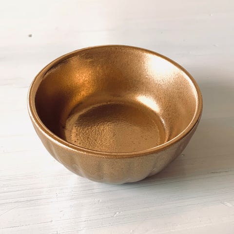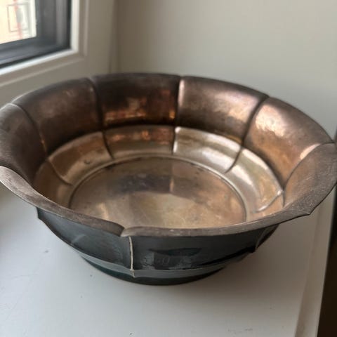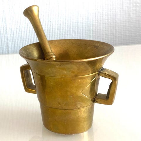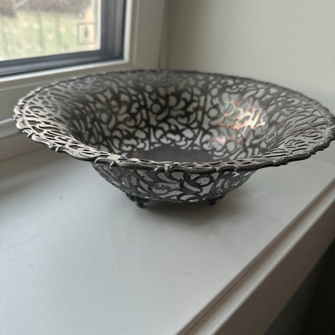 Dette er en øreskål med et dekorativt håndtak som har et ansikt eller englemotiv.