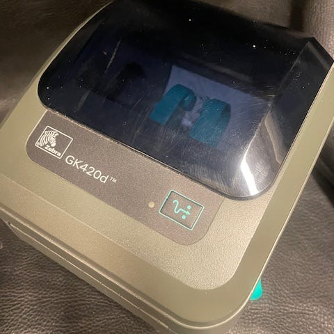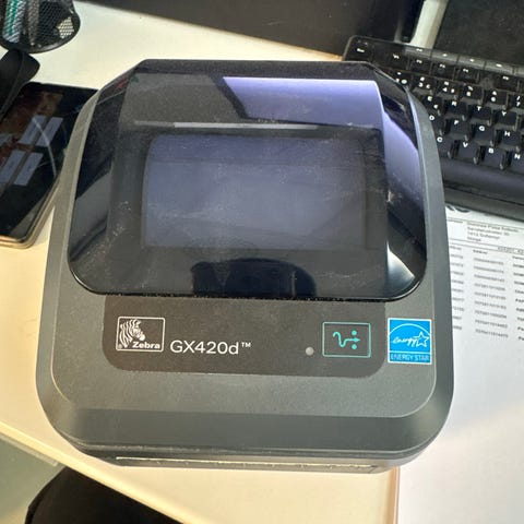 Zebra GK420d termisk etikettprinter designet for utskrift av etiketter. Enheten har en kompakt størrelse og benytter direkte termisk utskriftsteknologi, noe som gjør den egnet for ulike merkemiljøer.