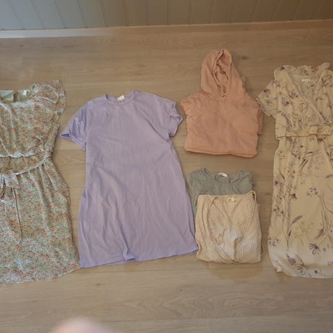 Klespakke med mammaklær i hovedsaklig str L, men også et par plagg i M og XL (størrelsen står merket på bildene). Pent brukt. Hovedsakelig fra H&M, men også noe fra Lindex, Mamalicious, ICIW og Anna Field