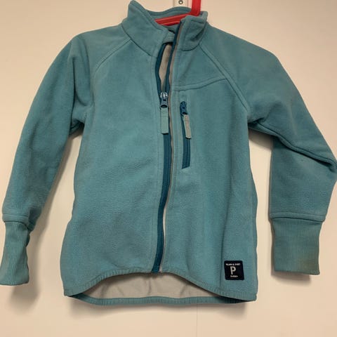 Vindfleece fra Polarn O. Pyret i størrelse 98, grønn/turkis. Perfekt på tørre dager både vår og høst.