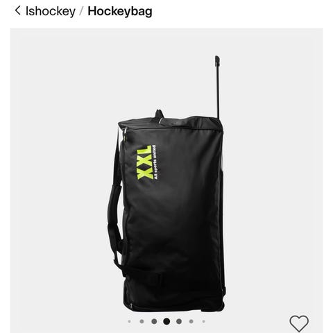 Stor hockeybag ishockeybag fra Saling med hjul og trillehåndtak. Baggen har to store siderom og en sidelomme. Dimensjonene er ca 90x45x45 cm. Den er kun brukt til én flyreise.