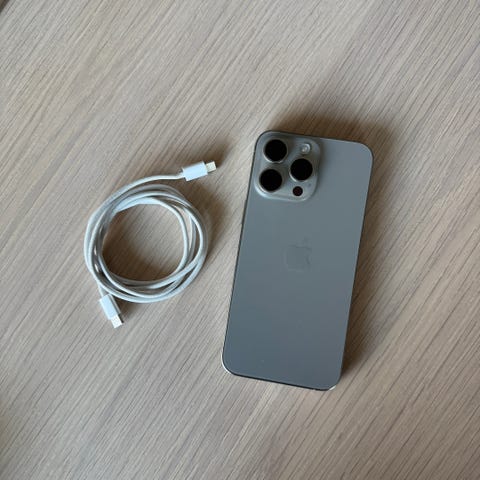 Apple iPhone 17 Pro med 256 GB lagringskapasitet. Telefonen har en oransje farge og et kamerasystem med tre linser. Skjermen viser tegn på bruk og har noen sprekker. Enheten er egnet for bruk med høy lagringskapasitet.