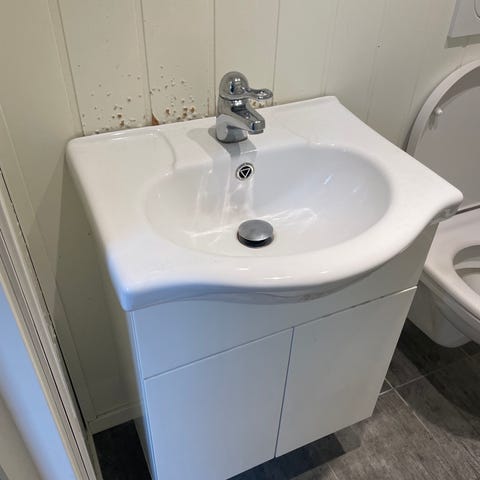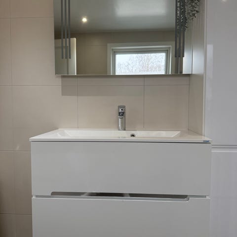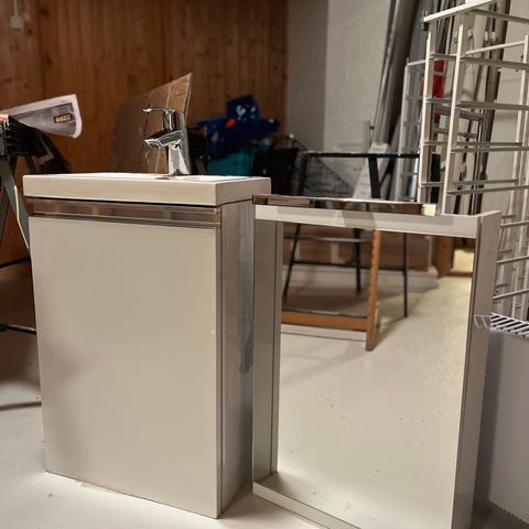 Servantskap 120, servant har liten sprekk, var ødelagt ved demontering. Selger med pop up ventil, blandebatteri