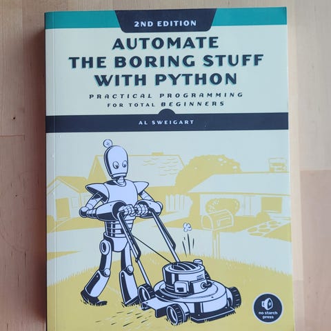 Automate the Boring Stuff with Python. Har noen notater og highlights i boken men ikke mye.