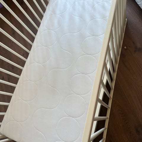 Sprinkelseng fra Troll, Alva heter modellen. Pent brukt, men noe mindre slitasje må påregnes (se bilder, men har ikke tatt bilde av ALLE mindre hakk). Kan monteres i tre høyder. Låsemekanismen i et hjørne på nederste nivå av sengen mangler, men det har ingen praktisk betydning for bruk. Ribbebunnen ligger fremdeles helt stabilt. Passer med madrass str 60cmx120cm. Madrass følger ikke med. Hvit. Må hentes.