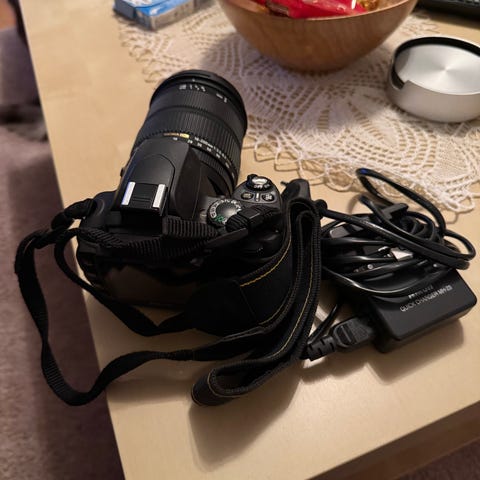 Nikon digital speilreflekskamera med utskiftbart objektiv. Kameraet har et ergonomisk design med flere kontrollknapper og en LCD-skjerm på baksiden for innstillingsoversikt. Egnet for fotografering i ulike situasjoner med mulighet for manuell og automatisk eksponering.
