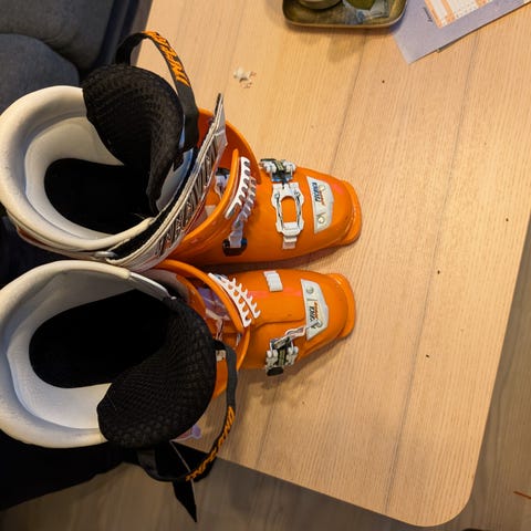 Tecnica alpinstøvler med hvit og rosa farge. Støvlene har justerbare spenner og polstret innside for komfort. Egnet for alpinski.